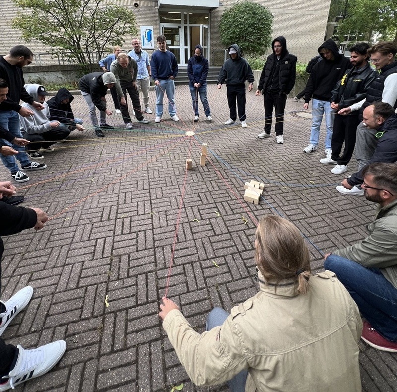 Nach der Stärkung lernen wir unser Trainer/-innen der „Schattenspringer“ kennen, die mit uns in großer Runde einige Kennenlernspiele durchführen. Danach geht es im Klassenverband weiter: in verschiedenen Teamübungen geht es darum, mit viel Spaß und Kreativität die Zusammenarbeit, die Kommunikation und den Teamgeist zu stärken. Darüber hinaus erfolgt eine erste Sensibilisierung für die verschiedenen Rollen/Aufgaben in einem Team.